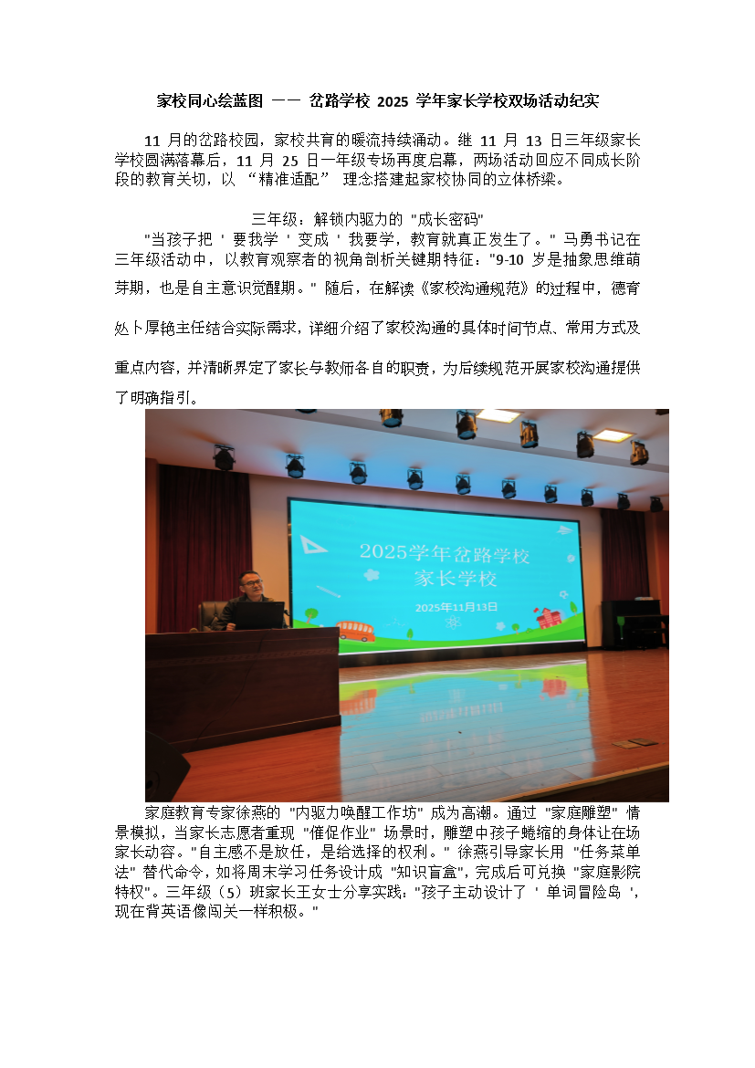 家校同心绘蓝图 —— 岔路学校 2025 学年家长学校双场活动纪实